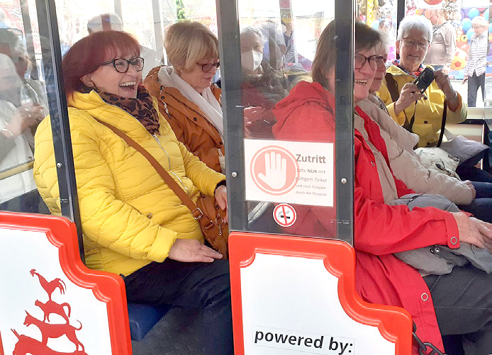 Erstes Ziel war die "Kaffeemühle", eine bis 1947 noch intakte Windmühle in den Wallanlagen und heute ein liebevoll zu einem Café-Restaurant umgebautes Kleinod. Danach ging es bummelnder Weise zum Rathausmarkt mit dem legendären Bremer Roland und dem trubeligen Freimarkt, dem Bremer Äquivalent zum Hamburger Dom. Die Rundfahrt mit dem Stadtmusikanten-Express rundete den Besuch ab.