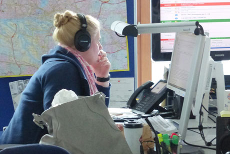 Im Produktionsstudio wurde uns anhand der digitalen Grafiken gezeigt, wie Beiträge zurechtgeschnitten, gemischt oder mit anderen Programmelementen ergänzt werden, z. B. mit Außenreportagen. Regina Kramer von der Musikredaktion schilderte, wie Musik ins Programm kommt.