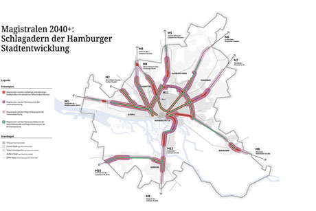 "Magistralen sind Hauptverkehrsstraßen und zugleich Orte zum Wohnen, Arbeiten und Leben. Mit einem gesamtstädtischen Masterplan setzt sich die Freie und Hansestadt Hamburg als erste deutsche Metropole mit der zukünftigen Rolle ihrer Magistralen auseinander."