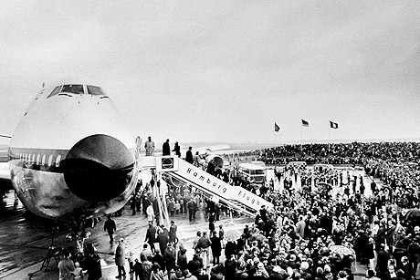 Am 30. März 1970 landete das erste Großraumflugzeug der Lufthansa, eine Boeing 747, in Hamburg. 1976 besuchte die Concorde Hamburg das erste und einzige Mal. In den 1970ern stiegen die Zahlen der Fluggäste erstmals mehr als die Flugbewegungen - gerade für einen Airport im Stadtgebiet eine Herausforderung in Sachen Lärmbelästigung und Logistik. Die Politik erwog eine Verlagerung des Flugverkehrs vor die Tore Hamburgs nach Kaltenkirchen in Form eines neuen riesigen Flughafens. Durch einen Einbruch der Hochkonjunktur im Luftverkehr durch Fluglotsenstreiks und die Ölkrise wurden diese Pläne jedoch verworfen.