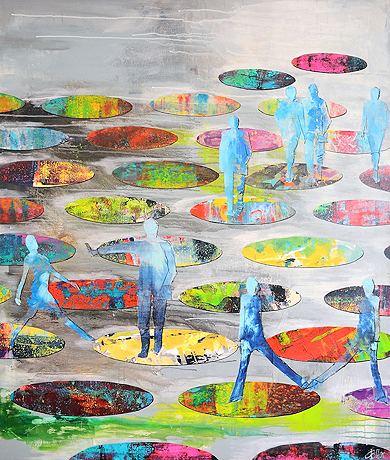 Jan Deimels Werke sind Unikate, die Hamburgmotive und abstrakte Flächen kombinieren und so in ihrer angenehm dezenten und dennoch anziehenden Wirkung in nahezu allen Umgebungen Betrachter erfreuen.