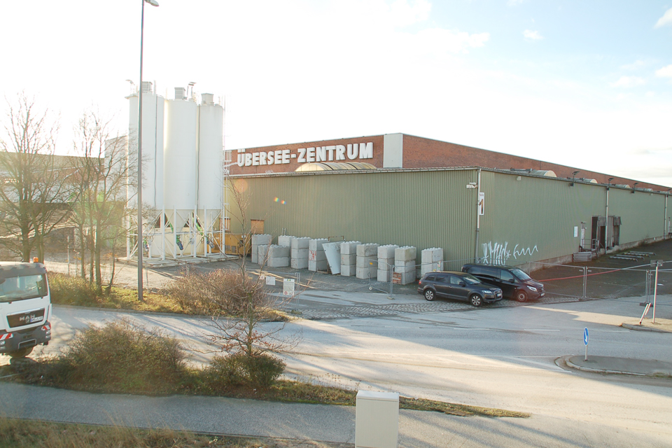 Für deren Bau wurden 1962 große Teile des Moldauhafens zugeschüttet. Der 1967 fertiggestellte Lager- und Bürokomplex, der von der städtischen Hafengesellschaft HHLA betrieben wurde, galt mit circa 150.000 Quadratmetern offenen und 100.000 Quadratmetern überdachten Flächen als größter Sammel- und Verteilerschuppen für Stückgut aus aller Welt. Prägend für das Gebäude war das mehrere Hundert Meter lange Schleppdach, das ursprünglich in die Neugestaltung des Bereichs einbezogen werden sollte. Doch dann stellte sich heraus, dass das Material marode war und der Bau abgerissen werden musste. Der Schriftzug "Überseezentrum" wurde jedoch für die Nachwelt gerettet und soll später einmal wiederverwendet werden. Dort, wo sich das Dach befand, wird zukünftig eine breite Grünzone entstehen.