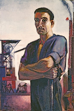 Am Beginn dieses Kunstverständnisses stand eine programmatische Verengung: Im Rahmen der sogenannten Formalismusdebatte wurden die Künste seit 1951 zu einem strikten sozialistischen Realismus nach sowjetischem Vorbild verpflichtet - parteilich, volksnah und mit positiver Botschaft. Die ästhetischen Errungenschaften der klassischen Moderne der Weimarer Republik wurden zugunsten plakativer Figurationen verworfen, und auch Werke NS-verfemter Künstler wie Ernst Barlach erfuhren zunächst neuerliche harsche Abwertungen als "spätbürgerliche Verfallskunst", antirealistisch und pessimistisch. Gemälde wie Hermann Bruses Porträt Der neue Eigentümer (1951) oder Rudolf Berganders Hausfriedenskomitee (1952), das eine angeregt diskutierende Tischgesellschaft zeigt, offenbaren das Bemühen um eine politische Wirksamkeit der Malerei.