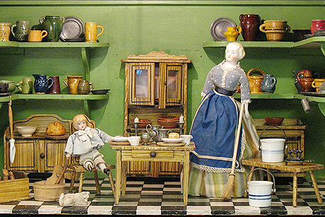 Samt, Seide, der zugehörige Hausstand und, als Hauptelement, die jeweiligen Spielpuppen aus ganz Europa veranschaulichen auf eine faszinierende Weise die Gesellschaftsformen aus der Zeit vom 18. Jahrhundert bis zu den 1950er-Jahren. Die verschiedensten Puppenstuben mit ihren zeitgemäßen Küchen oder kleinen Läden sind dabei in einer lehrreichen Chronologie angeordnet. Die Besucher erleben bildhaft die epochalen Entwicklungsschritte in Sachen Lebensverhältnisse, Mode, Design, Trends, Schönheitsideale und Kindheitswelten vergangener Zeiten. Die originalgetreuen Dioramen regen die Vorstellungskraft der Betrachter an, die an diesem bemerkenswerten Ort Geschichte erleben können.