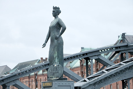 Die Hammonia-Skulptur des Bildhauers Jörg Plickat ersetzt seit 2003 die ursprüngliche von Aloys Denoth, die von 1888 bis zur Zerstörung im Zweiten Weltkrieg die Brooksbrücke der Speicherstadt schmückte